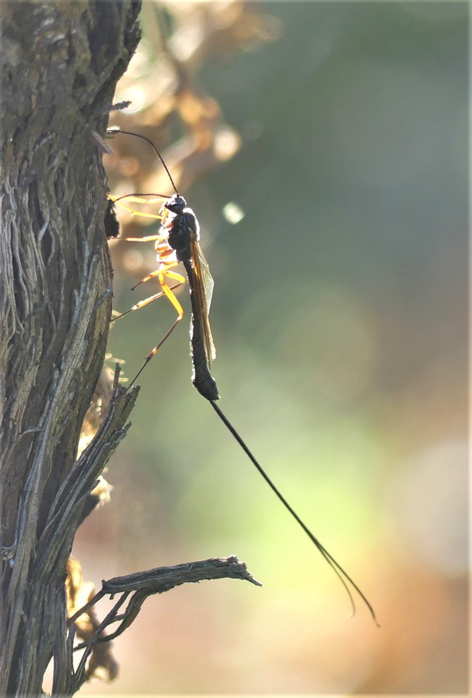Je n'ai pas pu progresser clairement vers une espèce putative en utilisant la clé Townes pour les femelles Dolichimitus. Mais aller "dans les deux sens" aux couplets ambigus, et à la recherche de caractères compatibles (ou exclusifs) dans la clé et les descriptions des différents candidats ... mon meilleur cliché est D. imperator, dont une photo organisée apparaît sur la page UBC (bien qu'il semble manquer la fine pubescence présente sur mes photos).