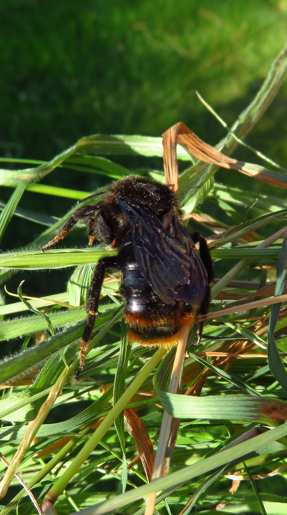 Mes arguments pour Psithyrus: les poiles orange au fesses plutôt claire-semé, les ailes très foncées, et pour une femelle la taille.