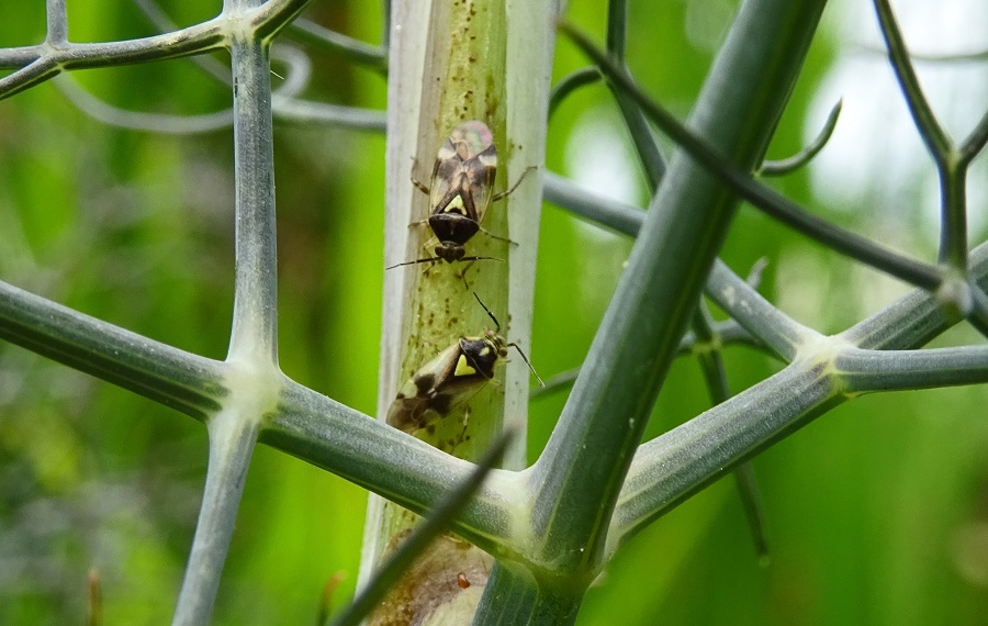 Finistère nord, au jardin sur mon fenouil bronze le 29 juin 2019, deux petites punaises d'environ 4-5 mm